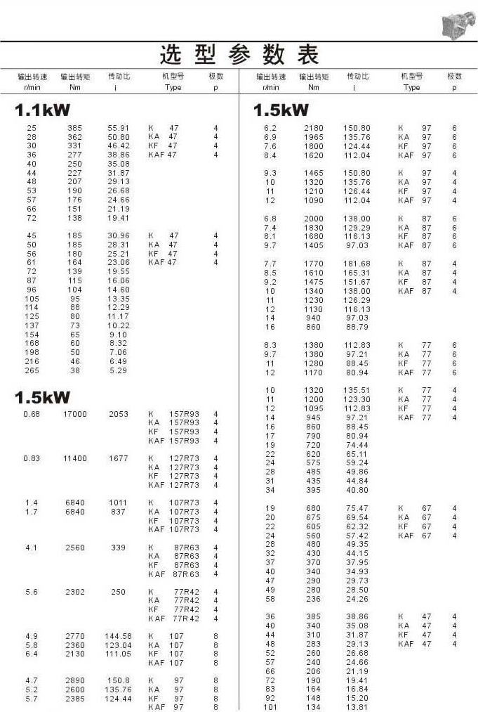 選型參數(shù)表1.1kW(續(xù))和1.5kW