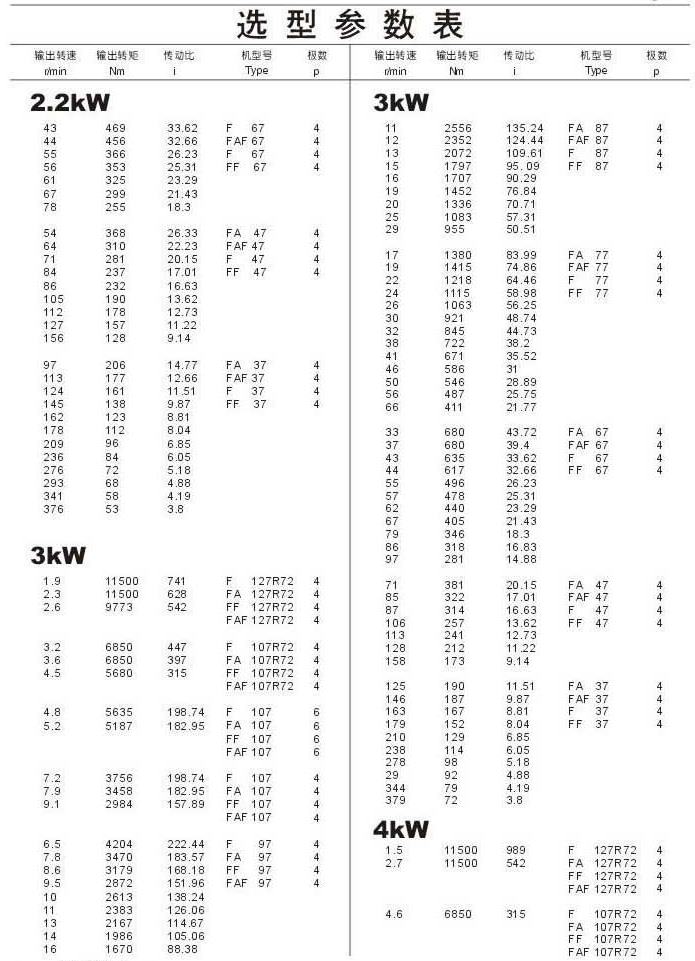 選型參數(shù)表2.2kW(續(xù))3kW,4kW