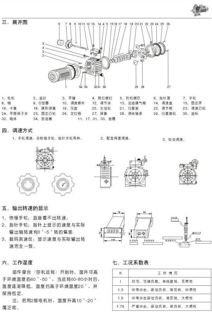結(jié)構(gòu)展開(kāi)圖調(diào)速方式輸出轉(zhuǎn)速的顯示工作濕度工況系數(shù)表