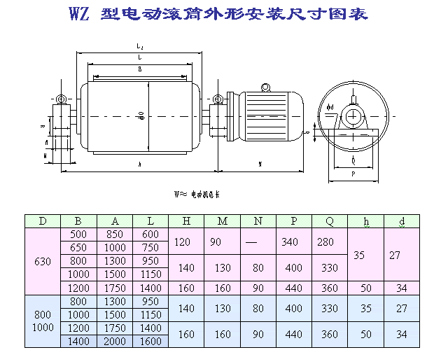 WZ外裝式擺線電動(dòng)滾筒系列參數(shù)表: